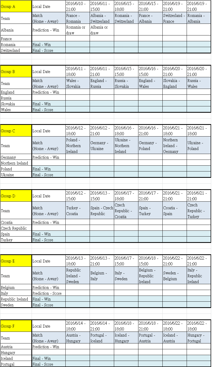 UEFA EURO 2016 Prediction on 2016/6/10