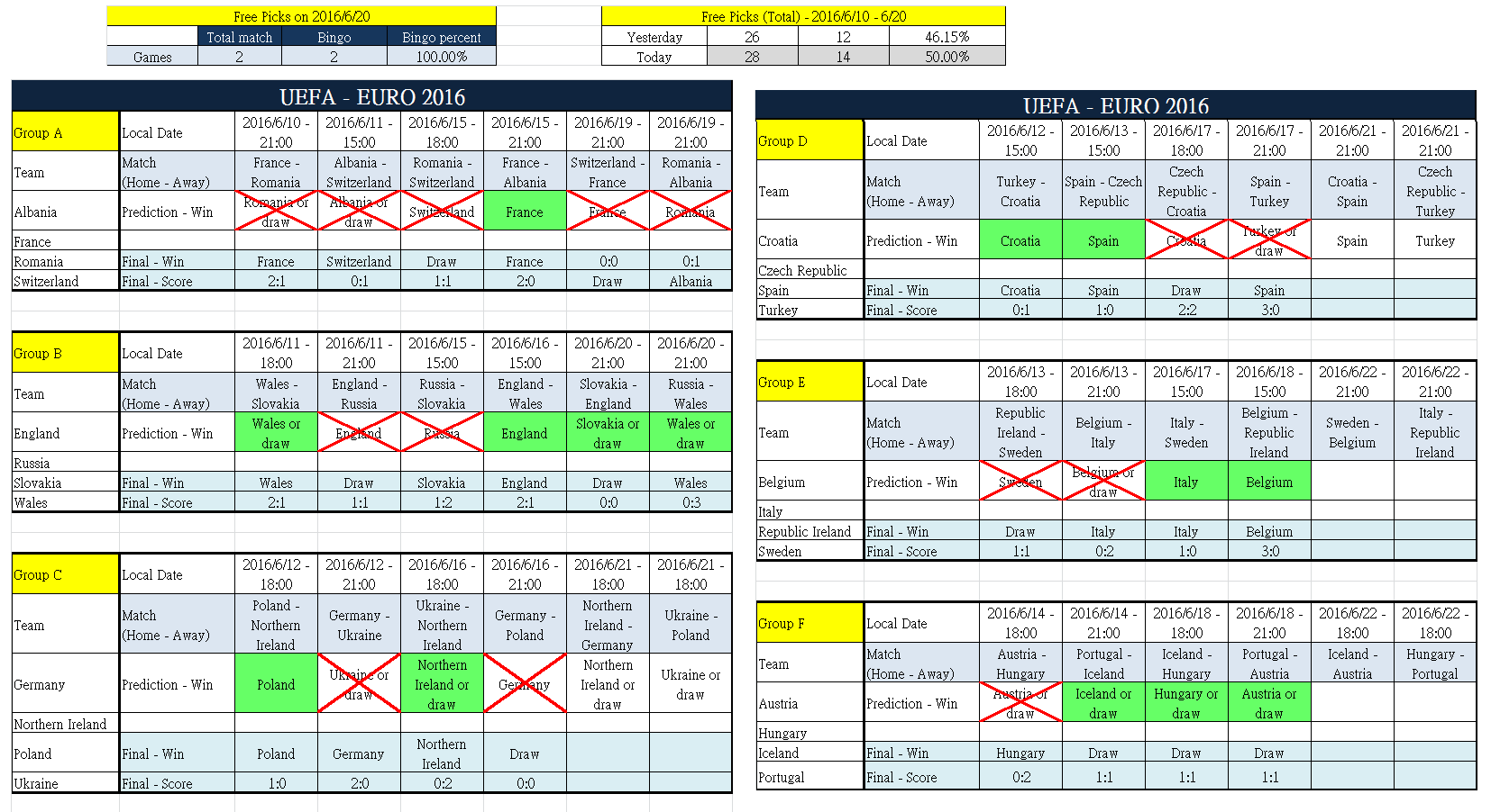 The bingo rate: 52.44% (43/82) - YaaFeng Sports Prediction Review 7/11 - 7/14/2013 (MLB,MLS,CBF,AFL)