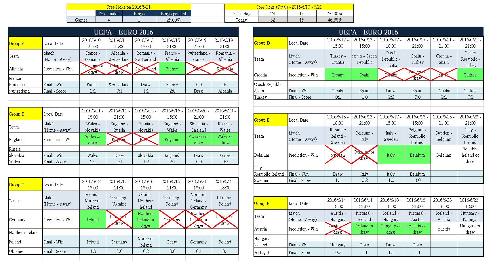 The bingo rate: 60% (42/70) - YaaFeng Sports Prediction Review 7/19 - 7/21/2013 (MLB,MLS,CBF,AFL)