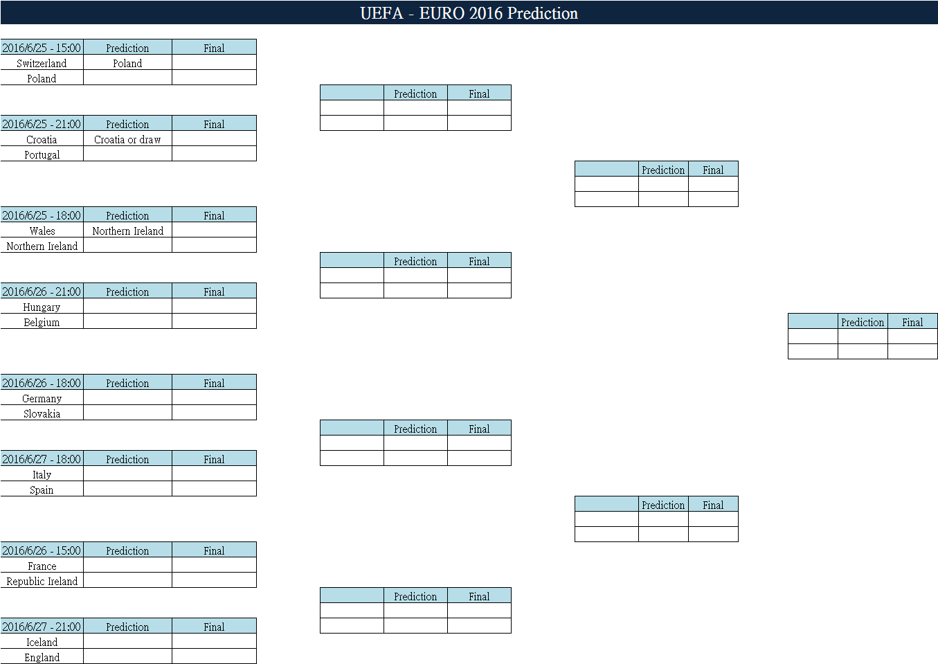 UEFA EURO 2016 Prediction on 2016/6/25