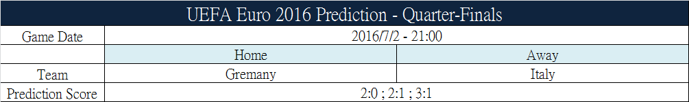 UEFA EURO 2016 Prediction on 2016/7/2 - Quarter-Finals - Germany Detail