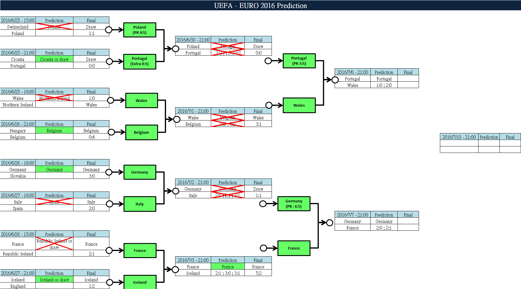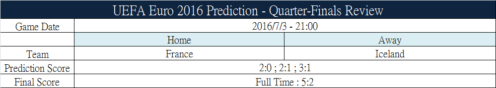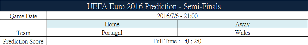UEFA EURO 2016 Prediction on 2016/7/6 - Semi-Finails